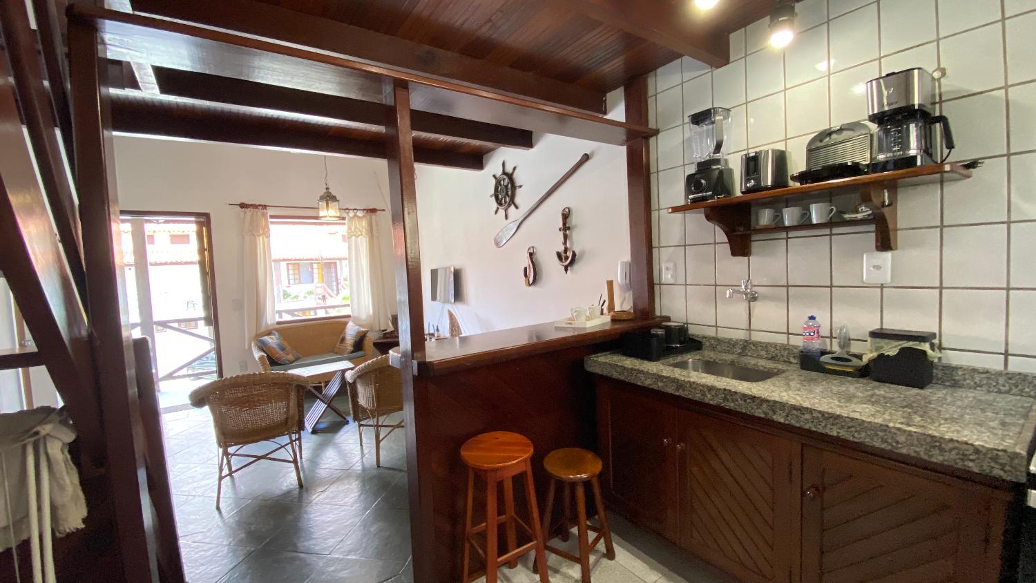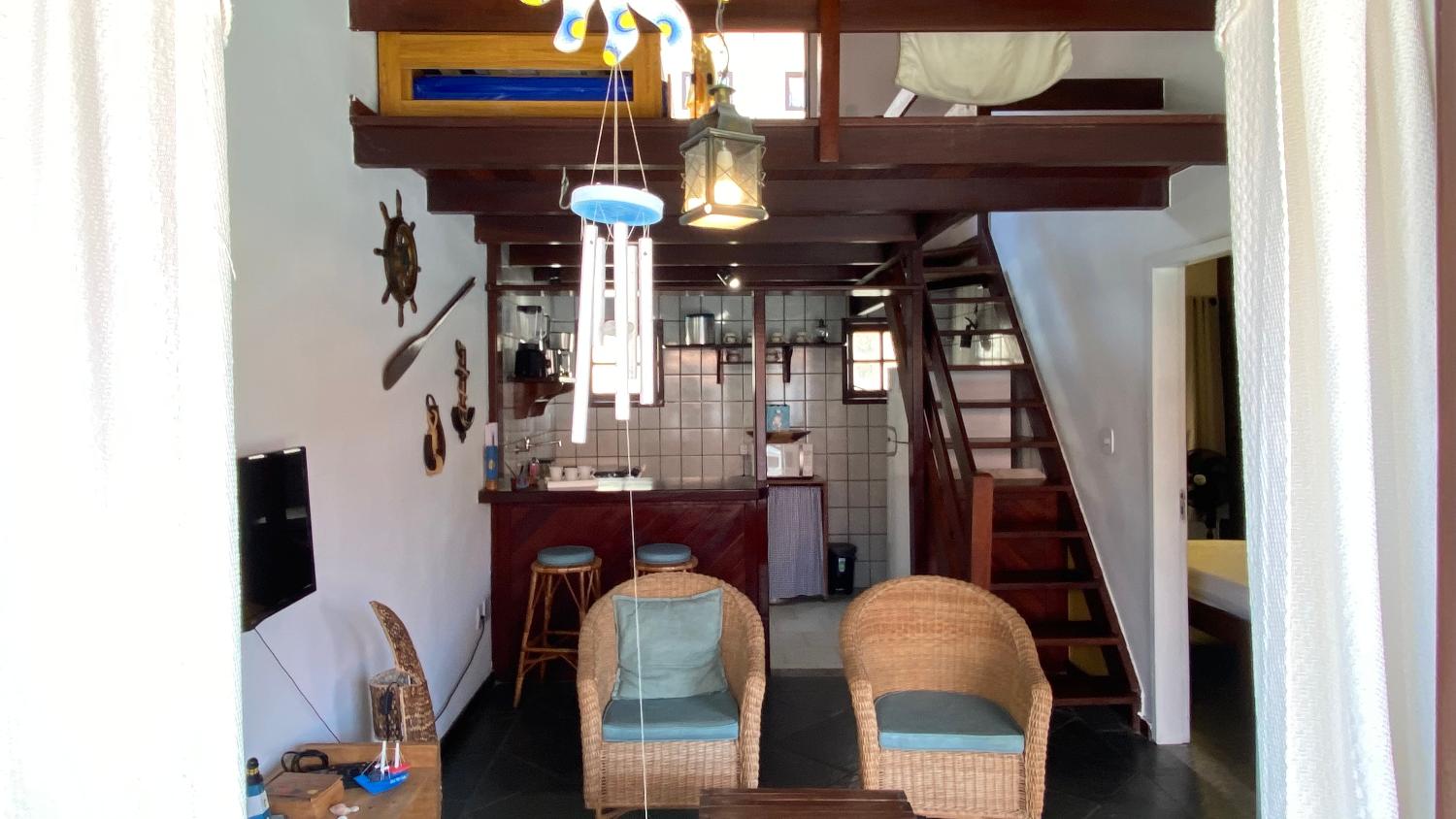 Casa aconchegante e totalmente mobiliada, com mezanino, dois quartos, sendo um suíte, sala, cozinha, varanda e vaga de garagem. O imóvel fica em um condomínio de casas, muito bem localizado, a poucos metros da praia. Entre agora mesmo em contato com a Dom Broker Imóveis e agende já a sua visita.